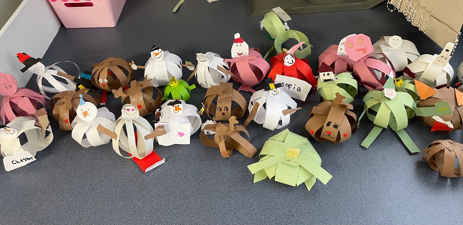 Primary 3 have been making 3D Christmas characters out of coloured paper this week. There have been Santas, elves, snowmen and reindeer made! They used their creativity skill when they were making these, which we have been learning about this week, as well as their focusing skill.