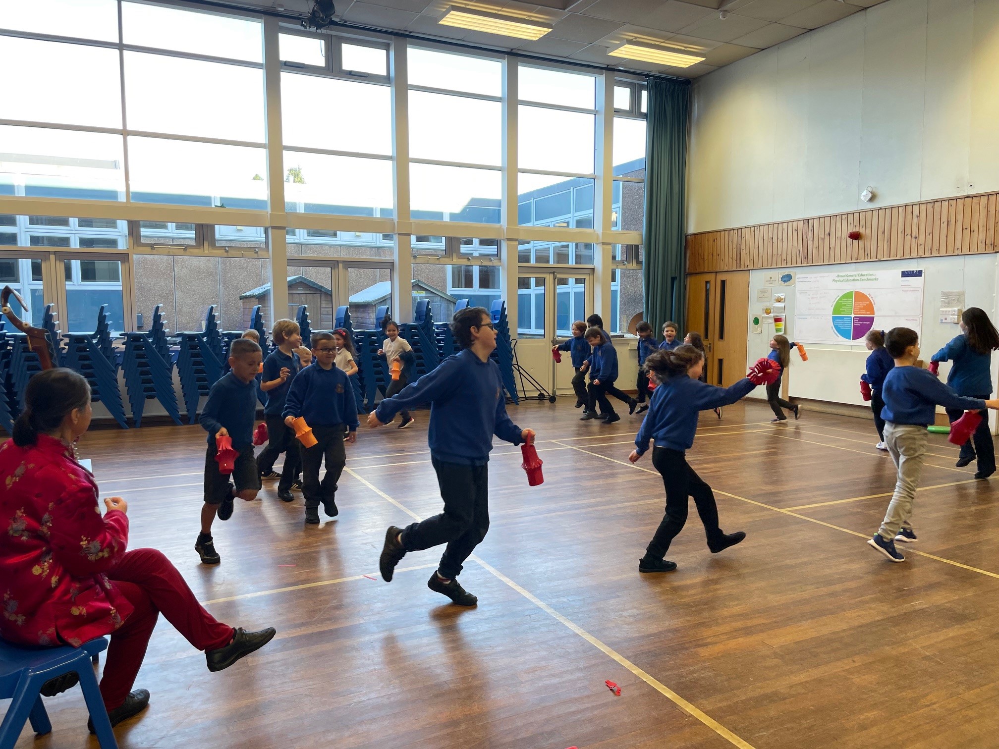 P3 attended a Chinese New Year workshop in the hall this morning. They had a fantastic time learning all about the Chinese calendar. They all learned how to say ‘hello’ and ‘Happy New Year’ in Chinese and got to practice using chopsticks. Ro’Ro played some beautiful Chinese music for the class to listen to, and a few pupils got to try it for themselves. They all then got to make a Chinese lantern and dance along to the music! Thank you so much to Ro’Ro for coming in to do this, it was a brilliant experience for the class!
