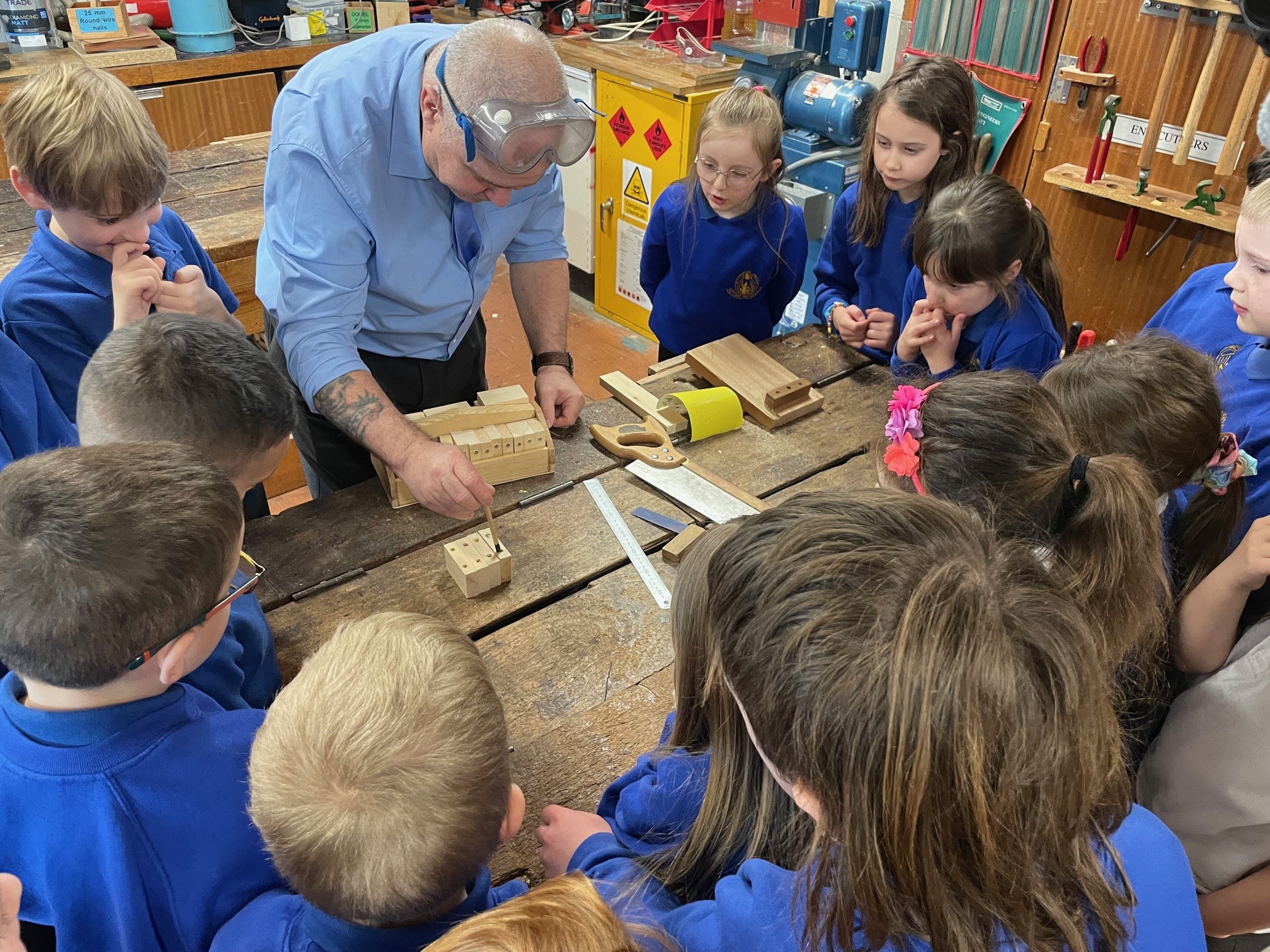 Primary 3 visited Mr Cairns in his woodwork classroom to finish their block of learning about trees and wood. Mr Cairns showed the class how to saw, sand, drill and plane a piece of wood. Everyone got to take away a wooden pencil holder to decorate and keep. The class had a fantastic time learning about how to make things out of wood! A big thankyou to Mr Cairns,